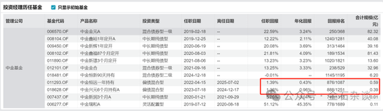 由于持续亏损,他在6月30日,一口气卸任了此前所管的所有产品,如今管理的只有中金先锋(5月20日开始管理),规模只有1.19亿,完全被边缘化了。